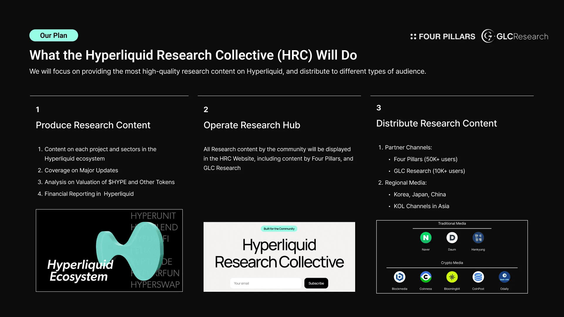 Hyperliquid Research Collective (HRC) is an initiative by GLC Research and Four Pillars, two independent crypto research firms focused on producing unbiased, high-integrity analysis. Independence has always been our anchor.