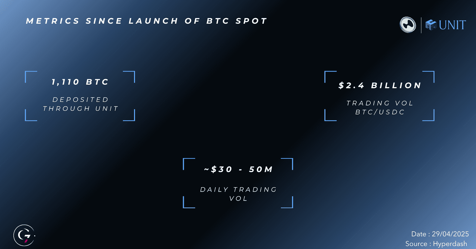 Unit enables native BTC and ETH deposits, powering Hyperliquid’s growing spot market.