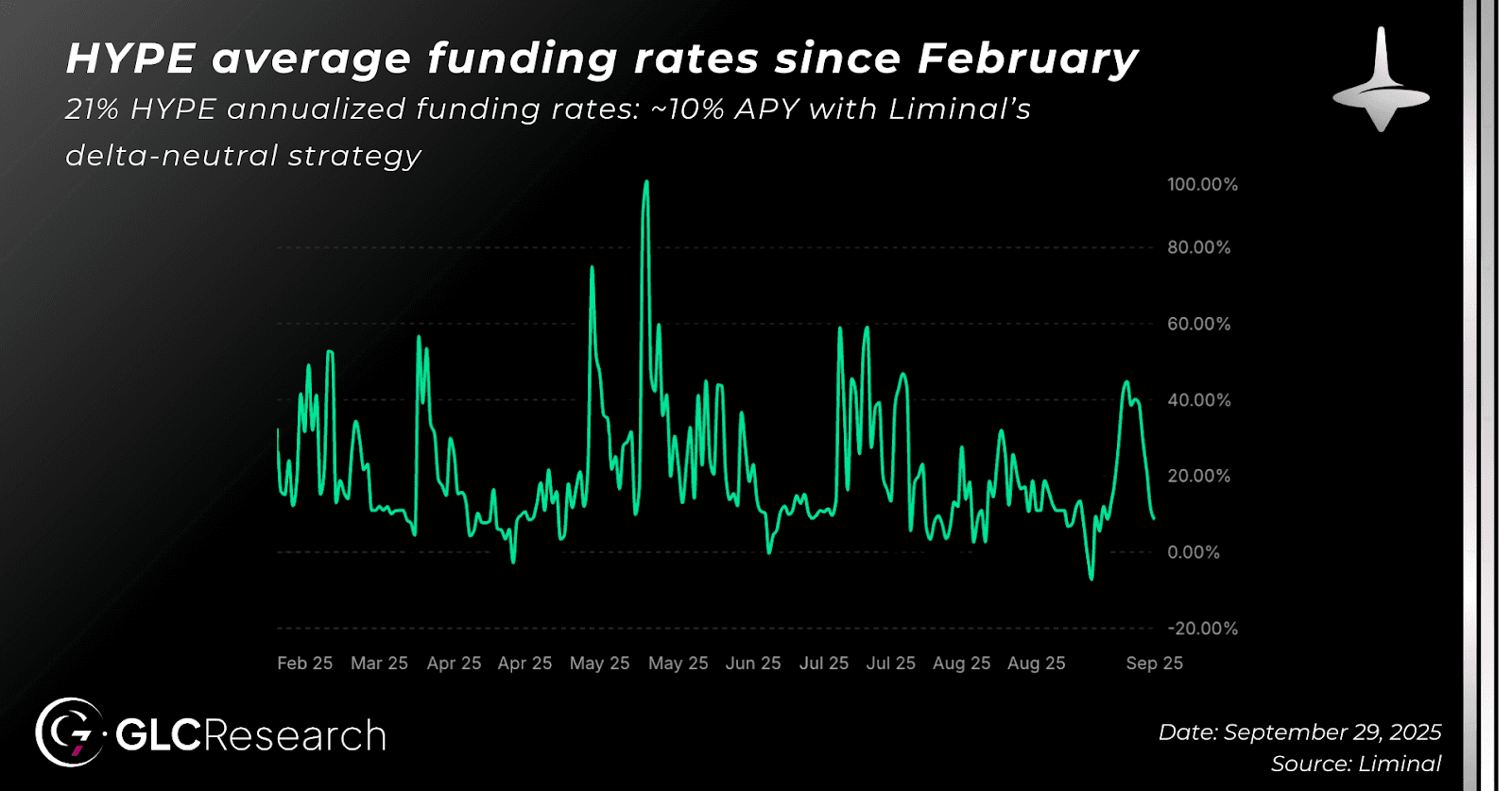 Imagine Nvidia or the S&P500 listed on Unit. HIP-3 could enable the corresponding perp markets. This would allow Liminal to offer fully on-chain, institutional-grade delta-neutral strategies for this new asset class. What makes tokenized stocks and indices particularly attractive is that they tend to be less volatile than crypto, making them easier to leverage. At the same time, demand for these assets is generally long-biased, which should translate into strong positive funding rates on perps. This combination is ideal for Liminal.