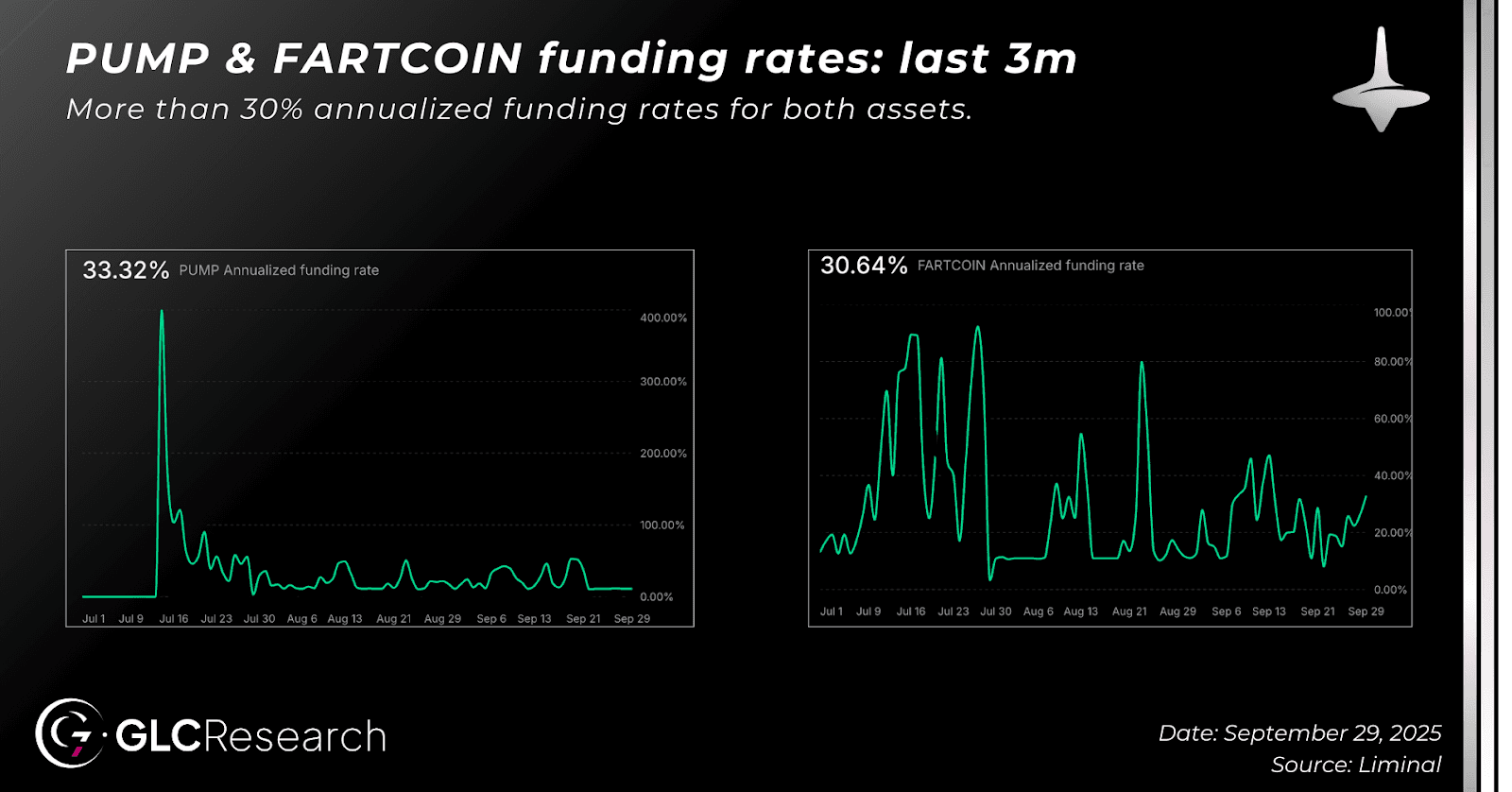 In reality, there are always strong opportunities to capture in the market, with speculative or newly launched tokens being prime examples. As shown below with $PUMP and $FARTCOIN, annualized funding rates exceed 30% on both.